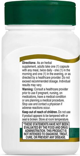 As a herbal supplement, adults take one (1) capsule with any meal, twice daily - one (1) in the morning and one (1) in the evening or as directed by a healthcare provider. Do not exceed recommended dosage. Individual results may vary.